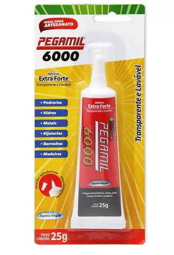 Ideal para pedrarias e vidros, é transparente e não mancha, pode ser usada também na indústria, uso doméstico, artesanato, moveleiro e automotivo .Pegamil 6000 é um Adesivo Extra Forte a base de resinas, formulado para trabalhos que necessitam de adesão de auto desempenho. Bico de precisão e anti-entupimento.