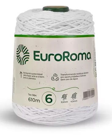 BARBANTE EUROROMA 600 GR FIO 6 COR 200 BRANCO 610 METROS