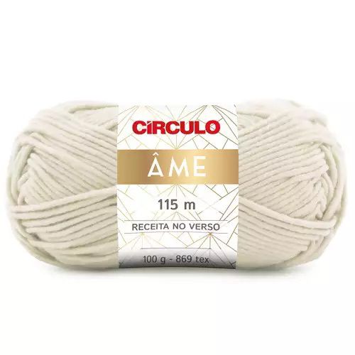 Fio Âme Circulo 100g Tex 869 Contém: 1 unidade de 100 gramas = 115 metros Composição: 52% Viscose / 27% Pliéster / 21% Poliamida Agulhas Recomendadas: Tricô - 5,0mm a 7,0mm I Crochê - 4,0mm a 6,0mm Elasticidade suave, maciez e com composição única. Fabricante: Circulo