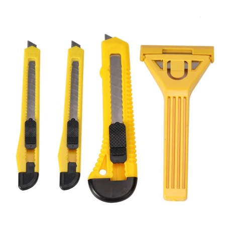 Conjunto de cortadores - 4 peças - Conjunto de facas utilitárias e raspador de lâmina larga com lâminas removíveis - Ideal para corte de caixas, faça você mesmo, artesanato e uso em escritório