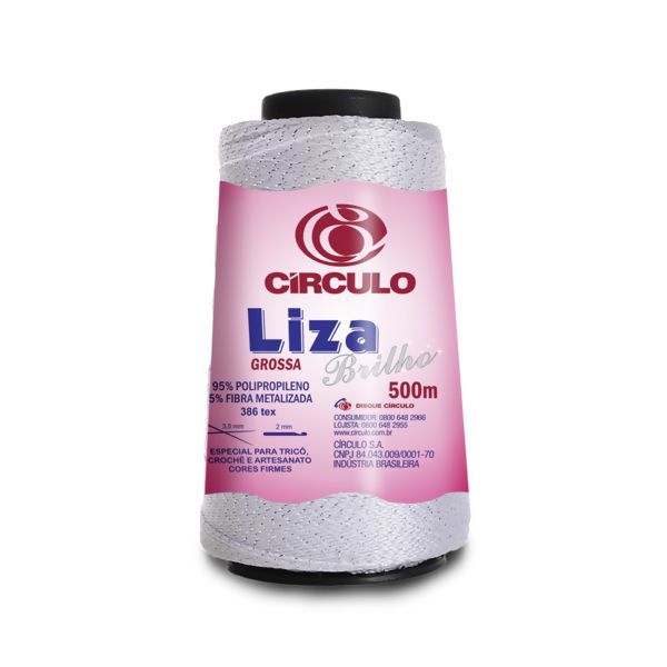Linha Liza Brilho Grossa TEX 386 Composição: 95% Polipropileno 5% Fibra Metálica Quantidade: 500 metros Agulha Recomendada: Tricô: 3,5mm | Crochê: 2mm Fio indicado para tricô, crochê e trabalhos artesanais em geral Cores com fio brilhante Fabricante: Círculo