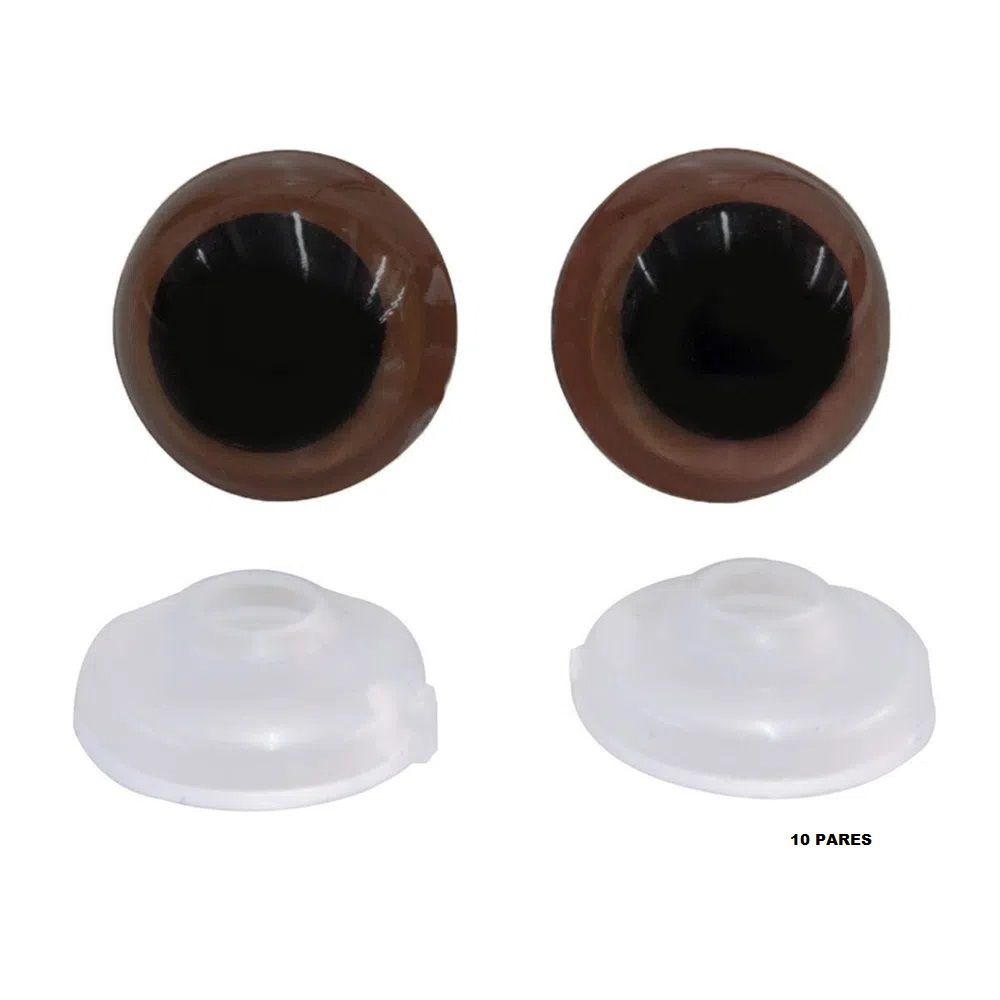 Olho Castanho para Amigurumi 14mm 20 Unidades Círculo. Os olhos para Amigurumis estão disponíveis em três tamanhos, possibilitando o uso em peças menores e delicadas, como também em Amigurumis maiores. Acompanha trava de segurança, macia e de fácil aplicação, garante encaixe perfeito a peça!