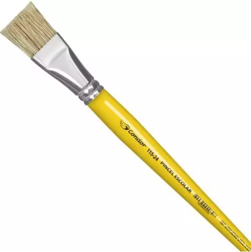 Pincel chato cabo longo. Ideal para cerâmica, tela, painel, mural e madeira.