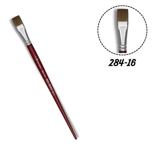 Pincel Chato com Cerda Sintética Suave, usado na abertura e largura com uma ou mais cores na ponta.