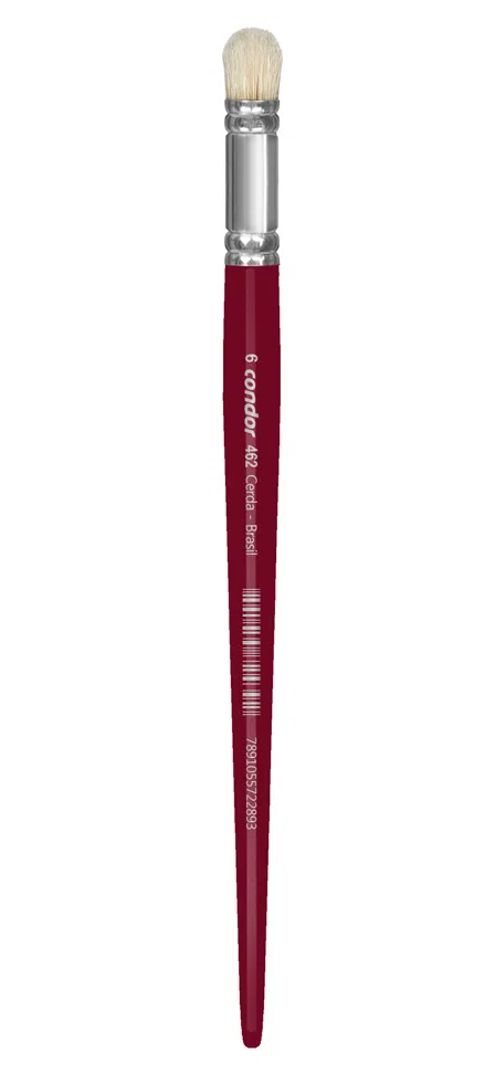 DESCRIÇÃO E ESPECIFICAÇÕES DO PINCEL Os pincéis de pintura são usados para a aplicação de tinta ou auxiliares para pintura. São produzidos usualmente pela fixação dos pelos ao cabo por uma cinta metálica, a virola. Pincéis de pintura têm dois formatos básicos: Redondo: os pelos longos, arranjados de forma compacta, deste tipo de pincel permitem reter mais tinta que outros pincéis de mesmo tamanho, mas formato diferente. Por isso, muitos artistas preferem-no ao colorir grandes áreas. Chato: espalham melhor a tinta. CUIDADOS COM OS PINCÉIS Pincéis de pintura devem ser limpos imediatamente após seu uso. Isto aplica-se principalmente no caso de tinta a óleo e tinta acrílica, porque a remoção dos resíduos de tinta seca pode danificar os pincéis. Nunca se deve deixar pincéis com as cerdas mergulhadas para baixo em recipientes com água, terebintina, ou qualquer outro solvente. Caso seja necessário limpá-los, faça-o utilizando-se da mão ou de um pano umedecido no solvente adequado, caso contrário, os pelos poderão deformar-se. Deve-se guardá-los separados, na vertical, com as cerdas para cima. Os especialistas em pincéis recomendam que os mesmos pincéis usados com tintas à base de óleo não sejam usados para tintas à base de água e vice-versa. Desta forma, seus pelos se mantêm sempre habituados ao mesmo tipo de substância química, oferecendo aos pincéis uma vida útil mais longa e ao seu trabalho artístico ou artesanal a oportunidade de conter em suas obras o resíduo apenas do material do qual está trabalhando. Lembramos que o resíduo de uma tinta a óleo em uma pintura acrílica pode prejudicar a obra com o passar do tempo, provocando rachaduras e queda da camada pictórica. Cuide do seu material com carinho, estes pincéis são trabalhados um a um e possuem um renomado grau de cuidados e excelência em sua fabricação. Se bem cuidados, os pincéis duram por longos anos. INDICAÇÕES: PARA: Desenvolvido especialmente para STENCIL, mas também pode ser usado para Colagens, Estamparia, Tecido, Luz Seca, Óleo e Acrílica. PELO/Cerdas:Cerda Alvejada. CABO: Longo Vermelho. VIROLA: Alumínio. FORMATO:Redondo Pituá.