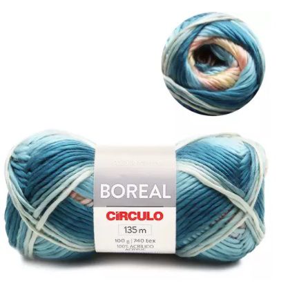 Fio Boreal Circulo Tex 740 Contém: 1 unidade de 100 gramas = 135 metros Composição: 100% Acrílico Agulhas Recomendadas: Tricô - 6,0mm a 8,0mm I Crochê - 4,0mm a 6,0mm Fio Boreal Circulo é composto por mesclas que consiste em tons coloridos e brilhantes, composição 100% acrílico. Suas peças vão ficar lindas com as cores do fenômeno da natureza! ACOMPANHA RECEITA NO VERSO.