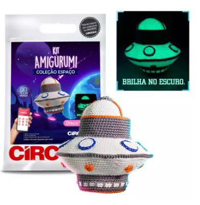 Kit Amigurumi Coleção Espaço Circulo Este Kit Contém: - 01 Agulha de Crochê 2,5mm | 100% Alumínio | Comprimento 14,3cm - 01 Agulha de Tapeçaria 16mm | 100% Aço | Comprimento 5,5cm - 40 Gramas de Fibra Para Enchimento | 100% Poliéster - 01 Marcador de Ponto Cadeado | 100% Plástico - 01 Novelo de 50g de Amigurumi Glow | Composição: 100% Poliéster Tex 476 - ET - 01 Meada de 6m de Amigurumi Cor 8990 (Preto) | 100% Algodão | Tex 492 - FOGUETE - 01 Novelo de 35g de Amigurumi Cor 2829 (Azul Bic) | 100% Algodão Tex 492 - 01 Novelo de 35g de Amigurumi Cor 3583 (Cereja) | 100% Algodão Tex 492 - DISCO VOADOR - 01 Novelo de 35g de Amigurumi Cor 8797(Aço) | 100% Algodão Tex 492 - 01 Meada de 8m de Amigurumi Cor 4456(Laranja) - 01 Meada de 8 m de Amigurumi Cor 2829(Azul Bic) - ASTRONAUTA - 01 Novelo de 35g de Amigurumi Cor 7650(Amêndoa) - 01 Novelo de 35g de Amigurumi Cor 2931(Náutico) - 01 Meada de 8m de Amigurumi Cor 3528(Carmim) - 01 Neada de 8 m de Amigurumi Cor 7567(Cacau) Composição: 100% Algodão Tex 492 - 01 Par de olhos de segurança | 100% plástico 10mm. - Acompanha Receita No Verso Expanda os limites da sua criatividade com a Coleção Espaço! Suas criações serão de outro mundo, ainda mais surpreendentes e especiais, e com um grande diferencial: Brilham no escuro! O Kit vem Completo para confeccionar uma peça, ideal para quem procura praticidade ou para os artesãos que ainda estão arriscando os primeiros Amigurumis.