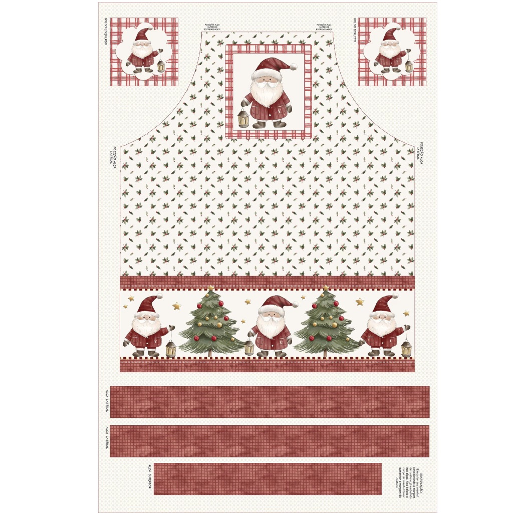 · Painel Faça você mesmo. Monte um lindo avental de forma simples e resultado incrível. Basta recortar, aplicar a manta R2 e forro e costurar (manta e forro não inclusos). Você receberá um tecido com a estampa e o pontilhado para recorte e costura da peça.
