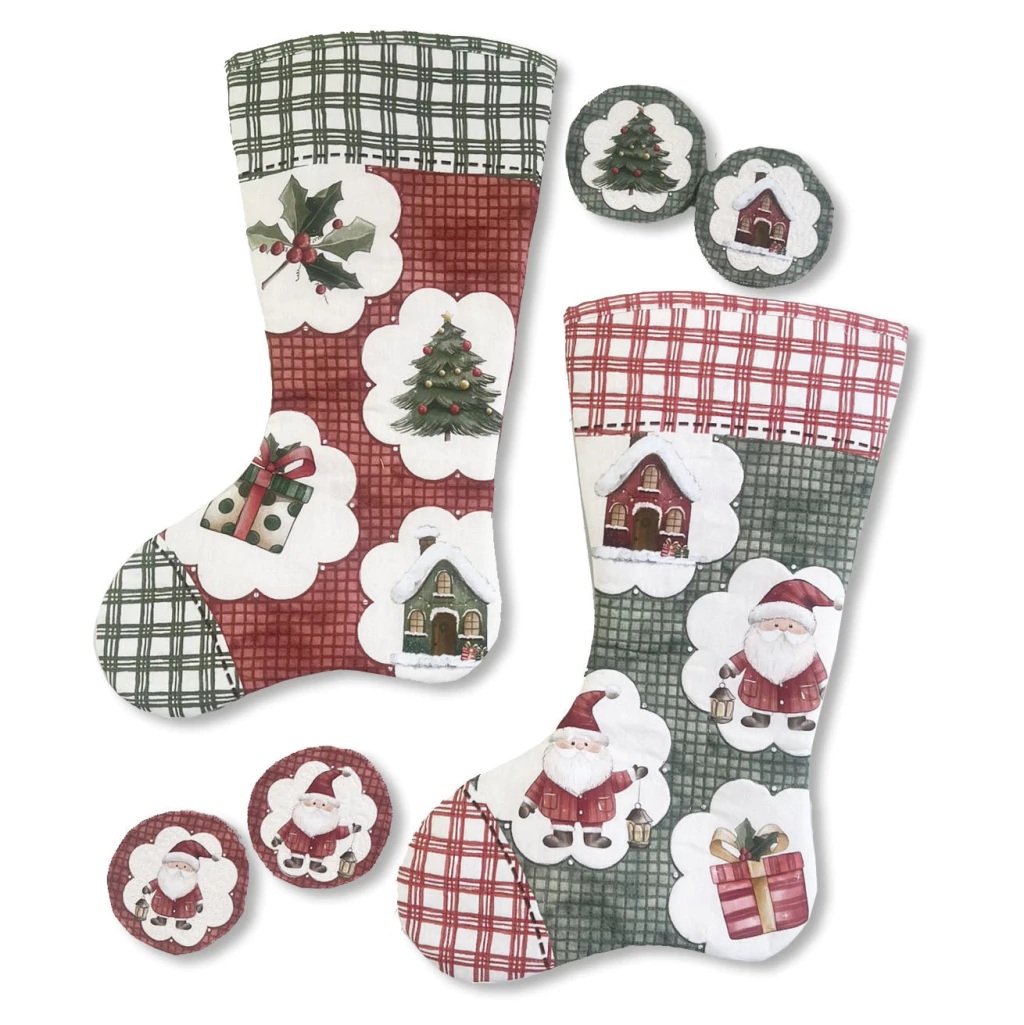 · Painel Faça você mesmo. Monte duas lindas botas e 4 enfeites de árvore de natal de forma simples e resultado incrível. Basta recortar, aplicar a manta R2 e forro e costurar (manta e forro não inclusos). Você receberá um tecido com a estampa e o pontilhado para recorte e costura da peça.