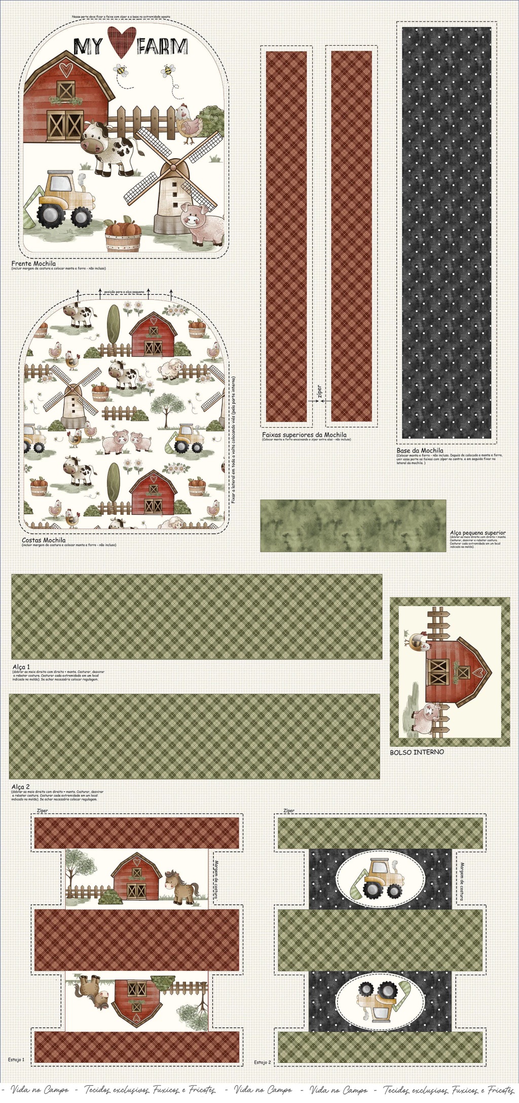 · Painel Faça você mesmo. Monte 1 linda mochilinha infantil e dois estojos de forma simples e resultado incrível. Basta recortar, aplicar a manta R2 e forro e costurar (manta e forro não inclusos). Você receberá um tecido com a estampa e o pontilhado para recorte e costura da peça.