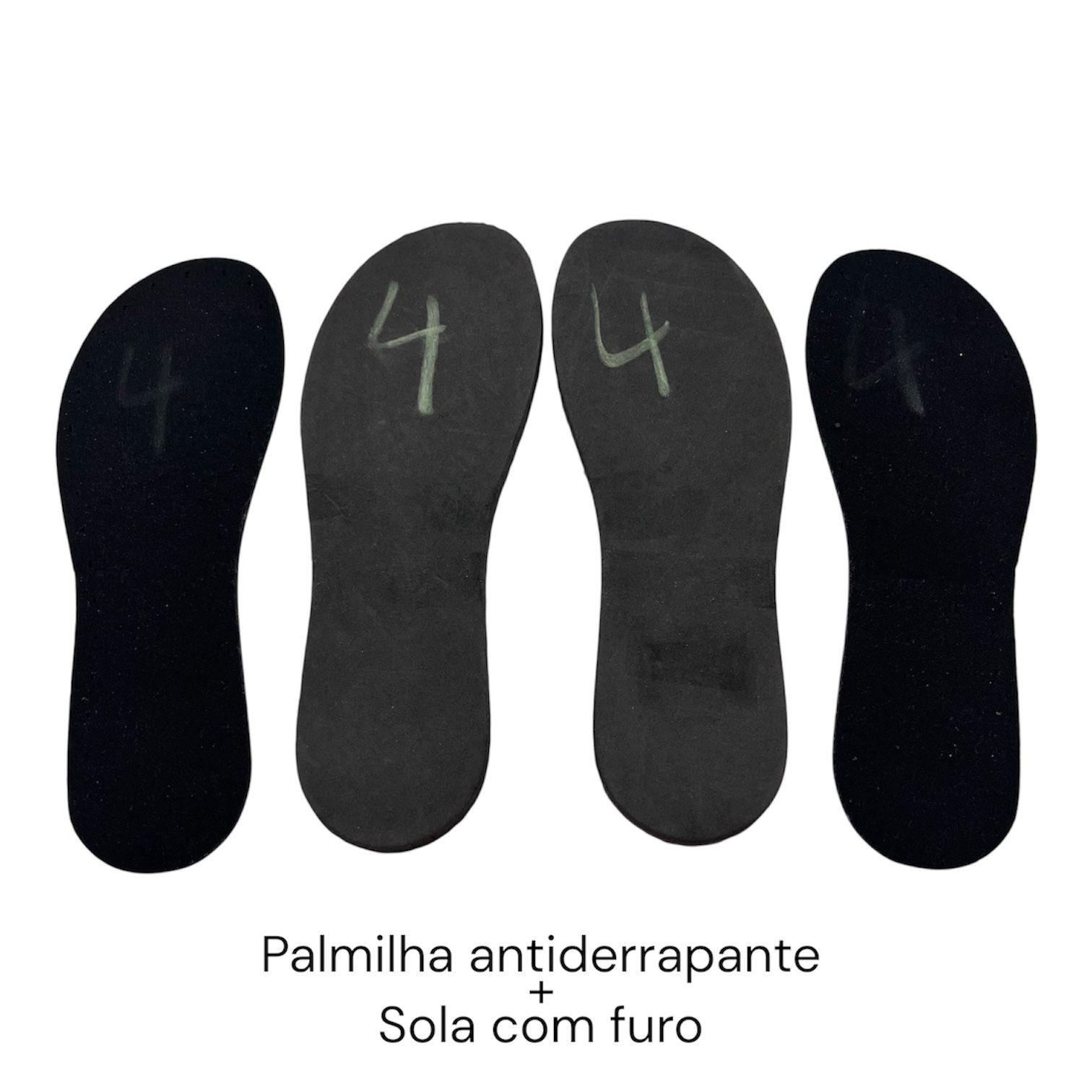A sola é feita em EVA de alta densidade, que proporciona resistência ao desgaste e conforto. A palmilha antiderrapante ajuda a evitar escorregões, oferecendo segurança em superfícies variadas. O formato com furo permite personalizar sua sandália ou chinelo com facilidade. Produto versátil para uso em calçados artesanais ou para reposição.
